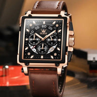 Meet the fashion square dial chronograph watch, a perfect combination of modern design and timeless craftsmanship. The bold square dial is a fresh approach to classic watchmaking, combined with a leather strap for unparalleled elegance and comfort. Designed to meet life's challenges, this watch is perfect for any occasion, whether you're at the office or exploring the great outdoors. With its luxurious quartz movement and impeccable details, this watch is more than just a tool-it is a statement of sophistication.